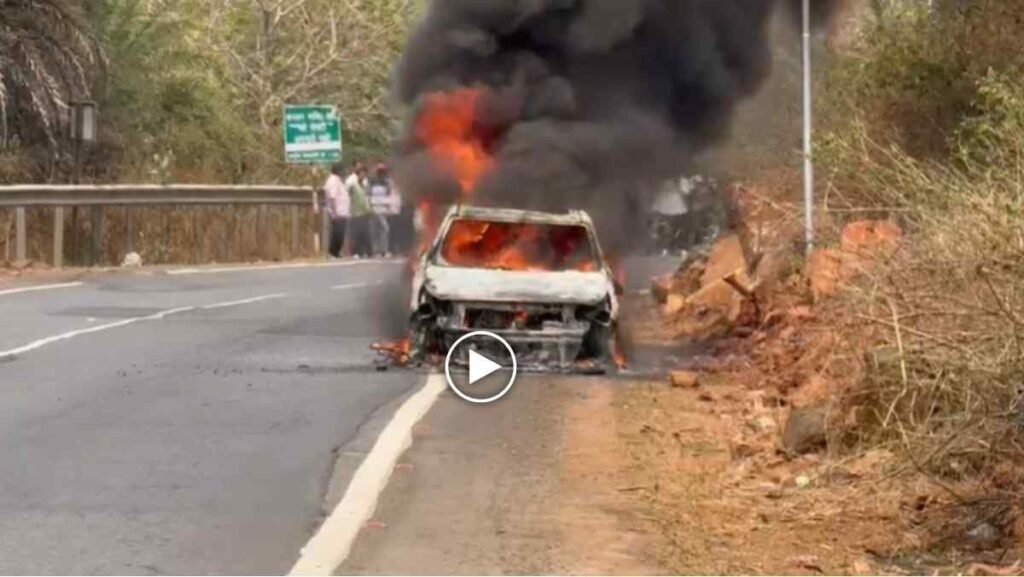 Chhattisgarh Road Safety Alert , दंतेवाड़ा — कोड़ेनार थाना क्षेत्र के बास्तानार घाट पर रविवार को उस वक्त सन्नाटा टूट गया जब एक चलती कार अचानक धू-धू कर जलने लगी। नेशनल हाईवे पर सफर कर रहे यात्रियों के लिए यह किसी डरावने सपने जैसा था। इंजन से धुआं निकलने के चंद सेकंड के भीतर ही पूरी कार आग की लपटों से घिर गई। ड्राइवर ने सूझबूझ दिखाते हुए तुरंत ब्रेक लगाए और सभी सवार सुरक्षित बाहर कूद गए।