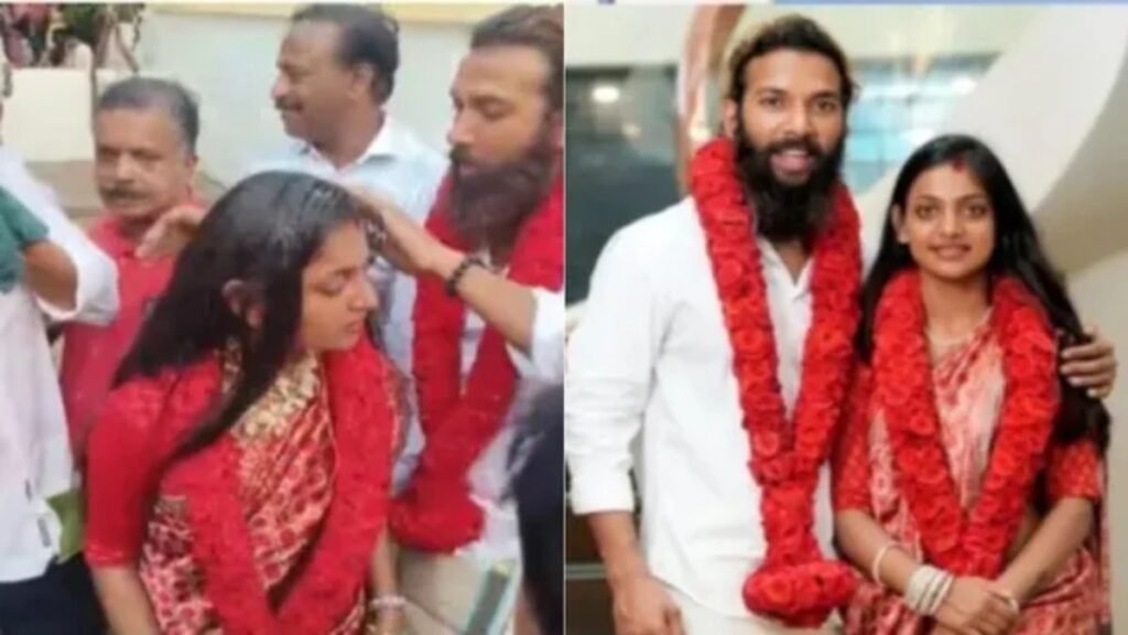 इंदौर/तिरुवनंतपुरम: महाकुंभ में रुद्राक्ष की माला बेचते हुए वायरल हुई और बाद में अभिनेत्री बनीं मोनालिसा भोंसले ने बुधवार को अपने प्रेम संबंध को विवाह के अंजाम तक पहुँचा दिया। मोनालिसा ने केरल के तिरुवनंतपुरम स्थित अरुमानूर श्री नैनार देवा मंदिर में अपने प्रेमी फरमान खान के साथ हिंदू रीति-रिवाजों से शादी की। इस दौरान फरमान ने उनकी मांग में सिंदूर भरा और मंगलसूत्र पहनाया।